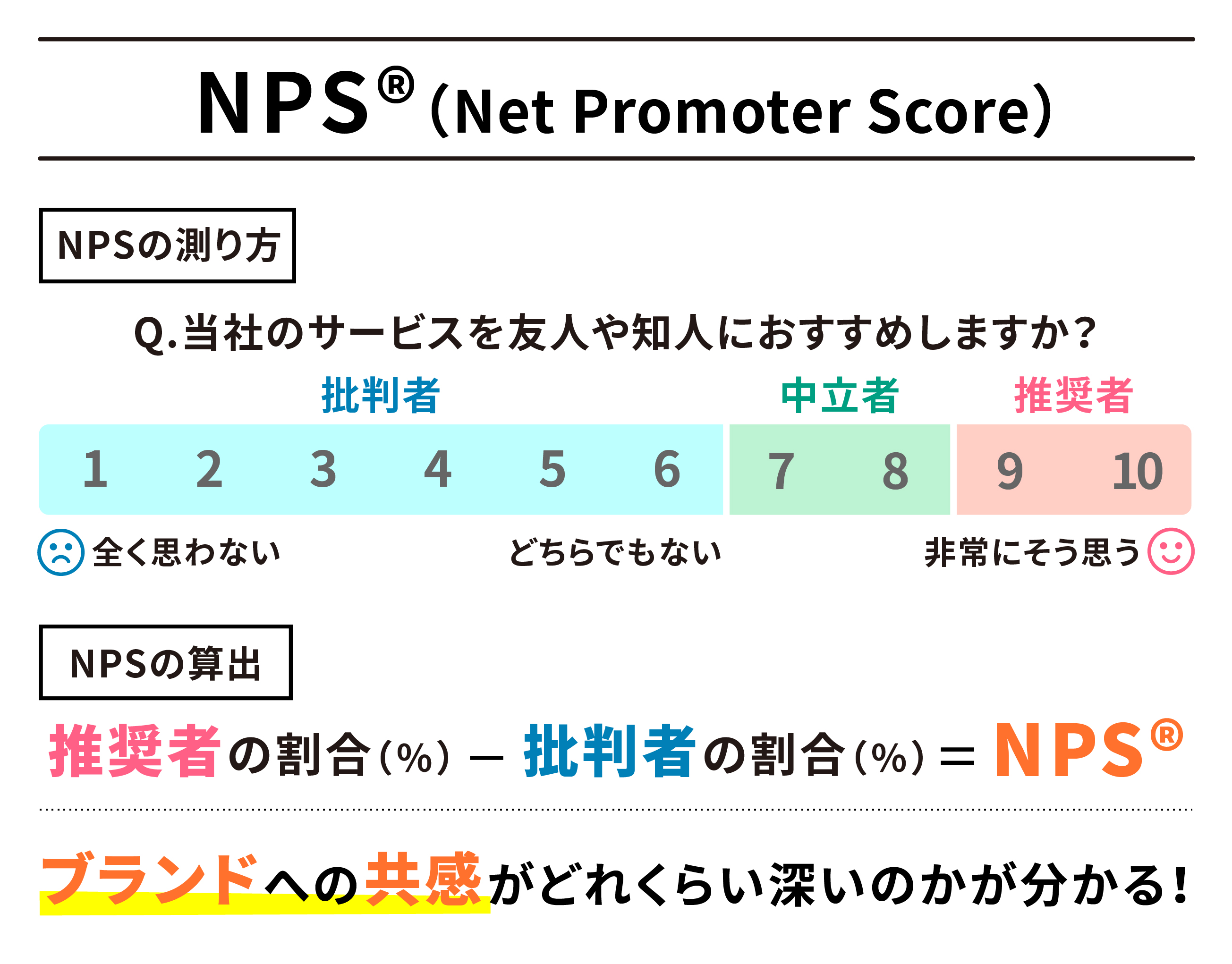 『あなたの店をどれくらい他の人におすすめしますか?』って聞いて、その結果を集めることで、ブランドへの共感度を測定することができる。