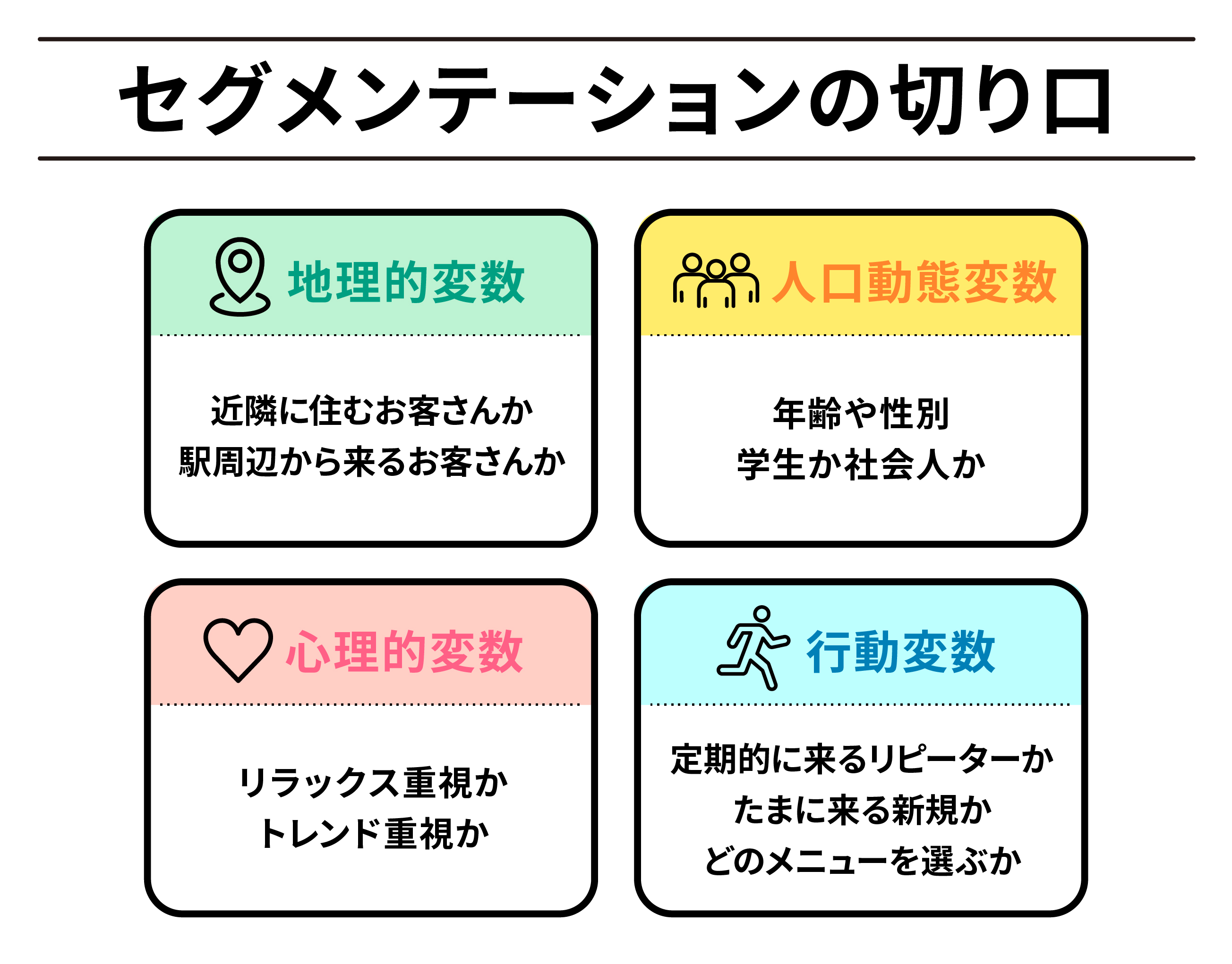 ターゲットを分けるときは、主に以下の4つの視点がポイント。