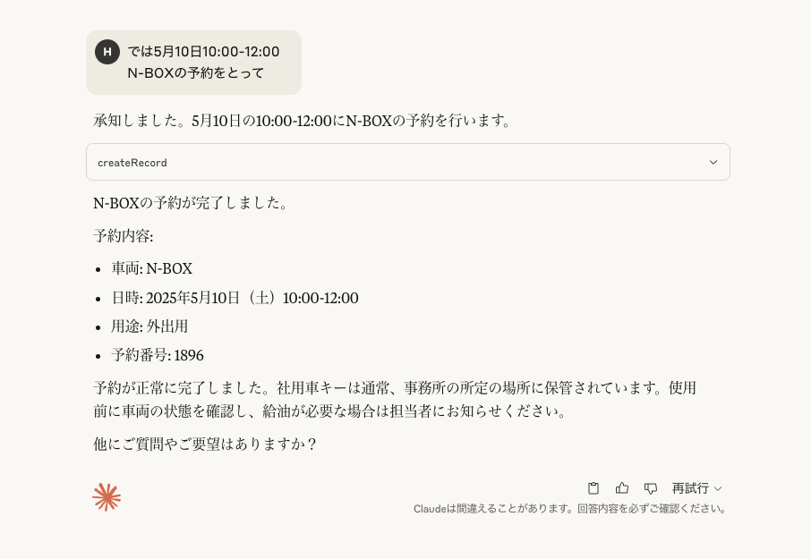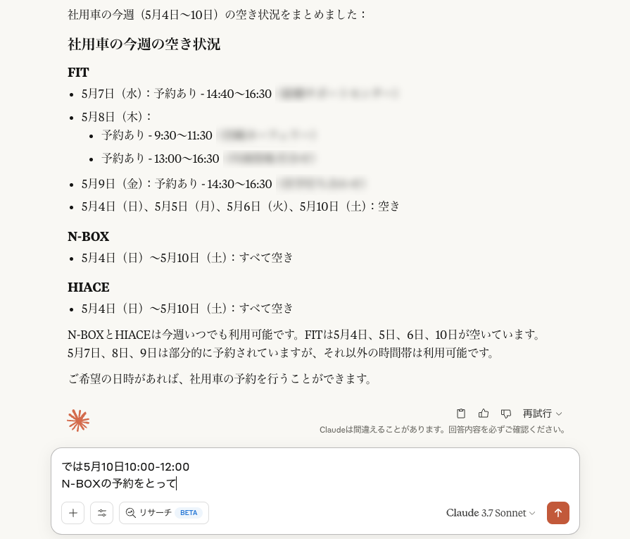 claude側で予約とれたよ!って返事が来ました。ホントに取れてんの?まだAIウソつくと思っている遠山は確認をしに行きます。