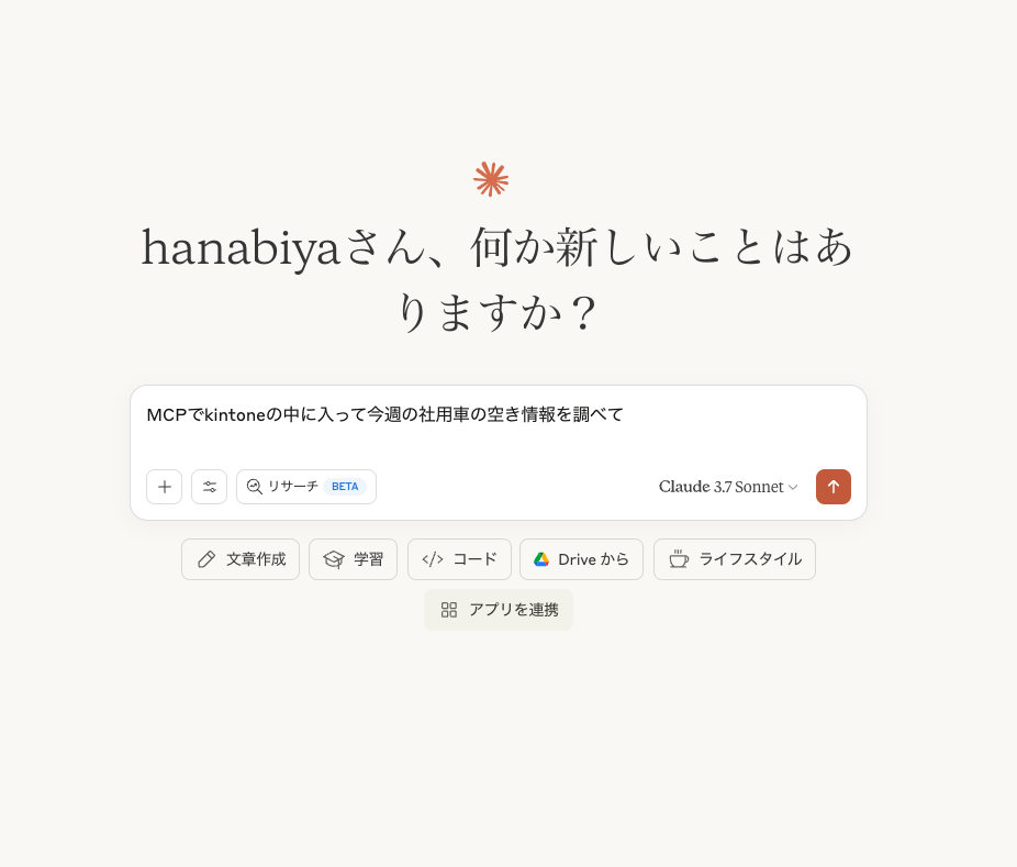 claudeのMAXプランではボタン1つでGoogleカレンダー、スプシなど簡単に繋ぐことができます。GA4やkintoneは対応してないのでターミナルを使って頑張って繋げました。まだMCPが発表されて数ヶ月なので面倒だったのですが、徐々にボタン1つでできるようになると思います。記事が繋ぎ方しか載ってなくてkintoneをMCPで繋いでどんな事できるか?などは探しても見つからなかったので書いてみました。これでみんなのまとめたり検索する作業工数をドン!と下げれればいいなと思ってます。
