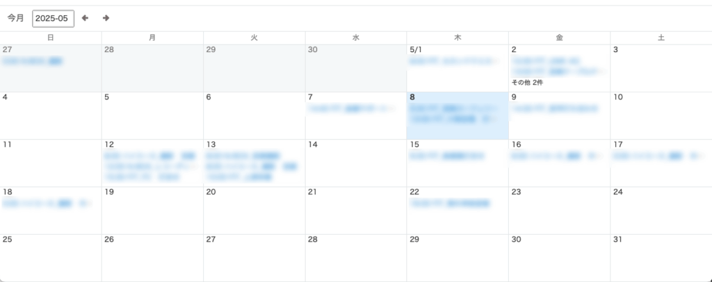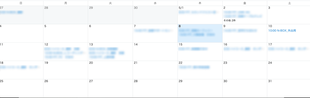 例えば、Kintoneで管理している機能の1つに社用車の予約があります。こんな感じ。