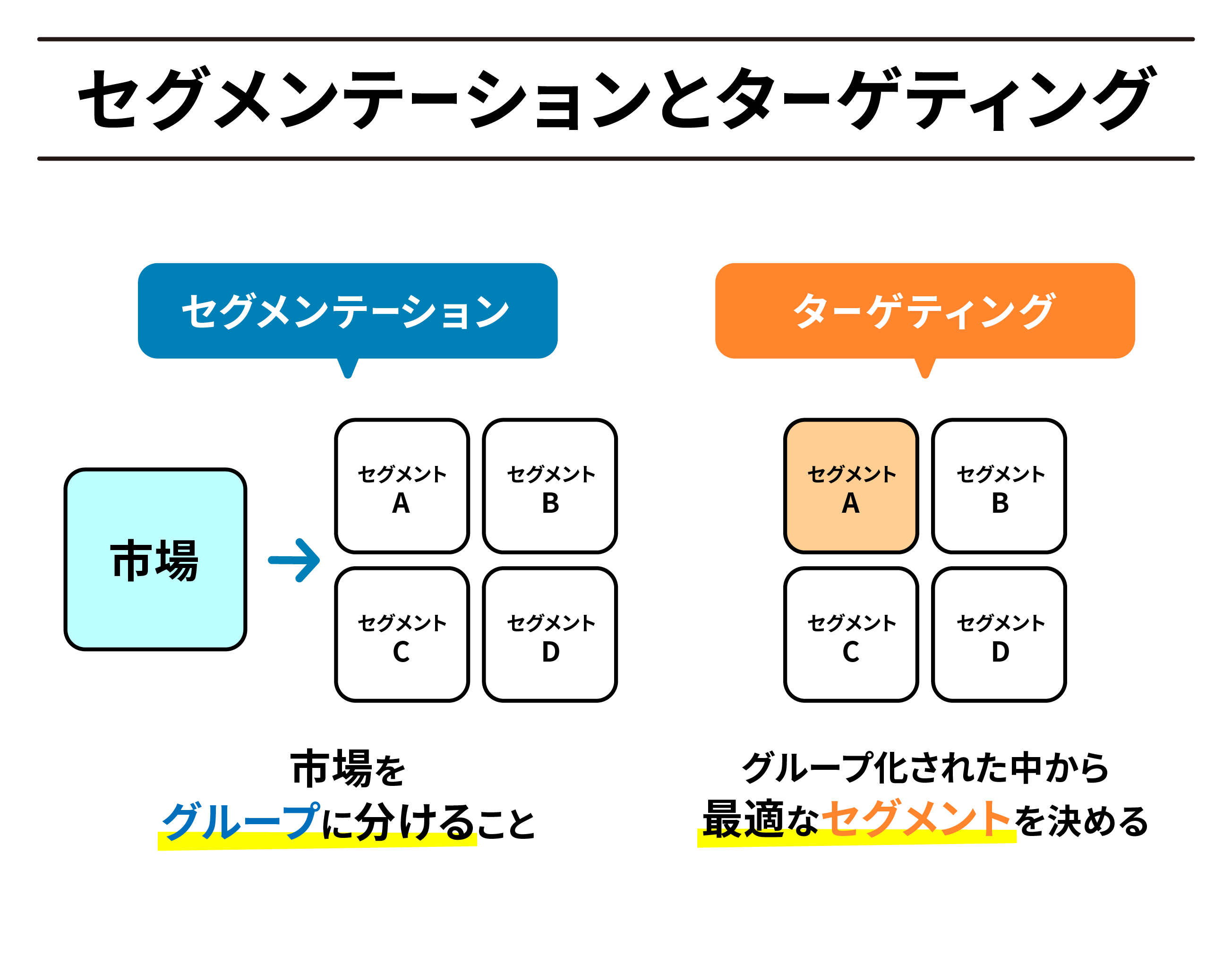 - セグメンテーションは「市場を複数の切り口で分けること」