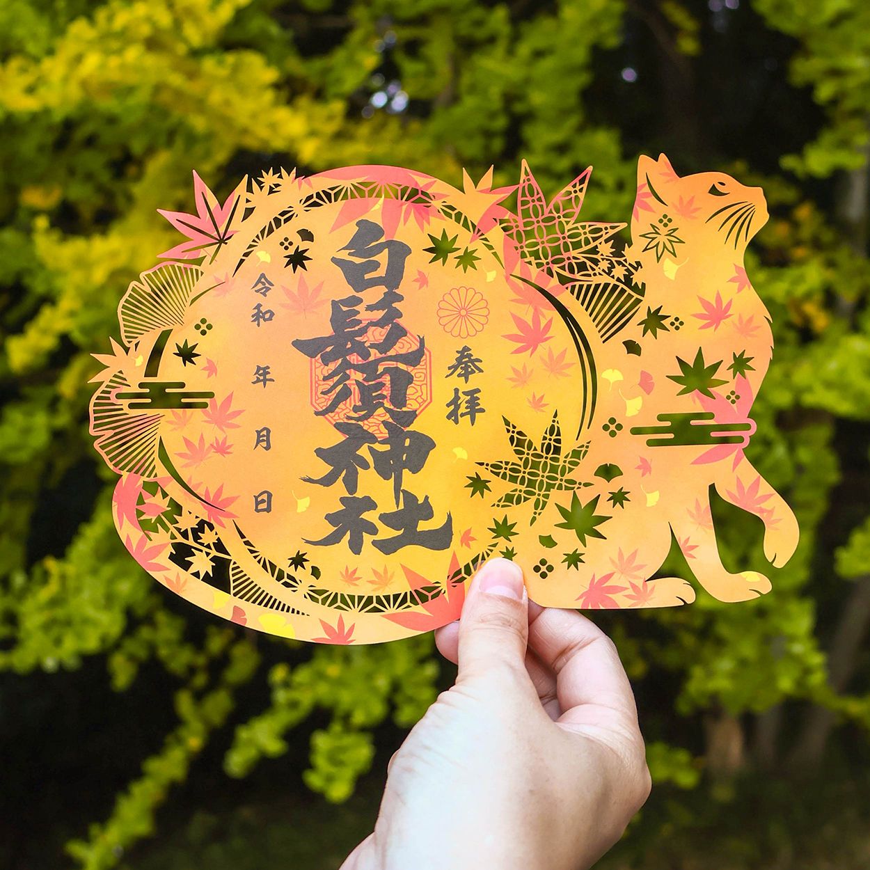 美しく色づく、秋の宝物。持つ人に癒やしとご利益をもたらす、七福猫の御朱印です。